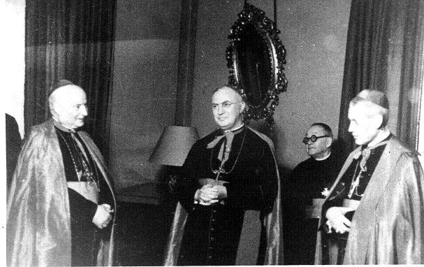 Püspökké szentelését követően: Alexandru Cisar bukaresti érsek (bal oldalt), Gerald Patric O'Hara (középen), Anton Durcovici (jobb oldalt)
