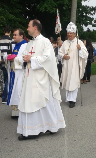 A Galánta közelében található búcsújáróhelyet a főpásztor tizennyolc pap és egy papnövendék kíséretében kereste fel. Az ünnepi körmeneten több mint ezer zarándok élén vitte lányok egy csoportja a kegyszobrot, amelyet majdnem száz évvel ezelőtt készített egy ismeretlen rab. A szobrot több évtizeden keresztül eltűntnek hitték, s csak ebben az évben sikerült megtalálni. A zarándokokat a százéves Nádszegi Fúvós Zenekar kísérte végig a községen.